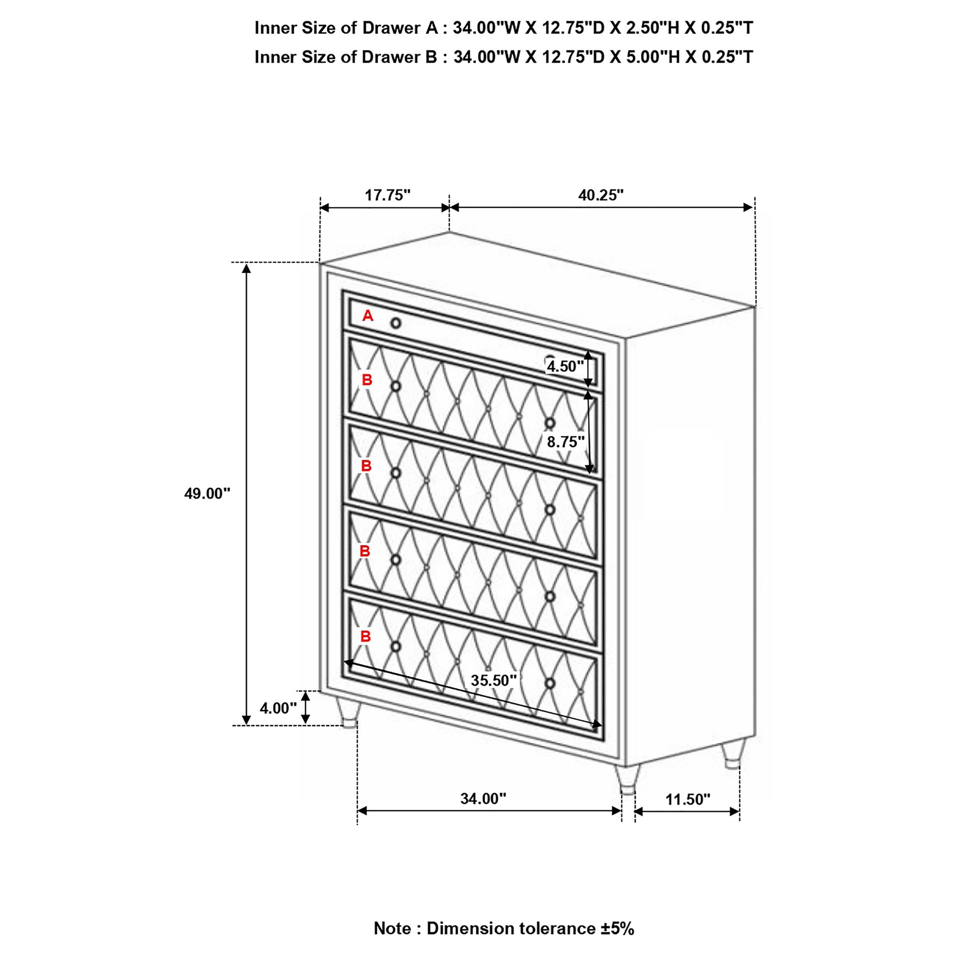 Antonella 5-drawer Bedroom Chest Ivory and Camel