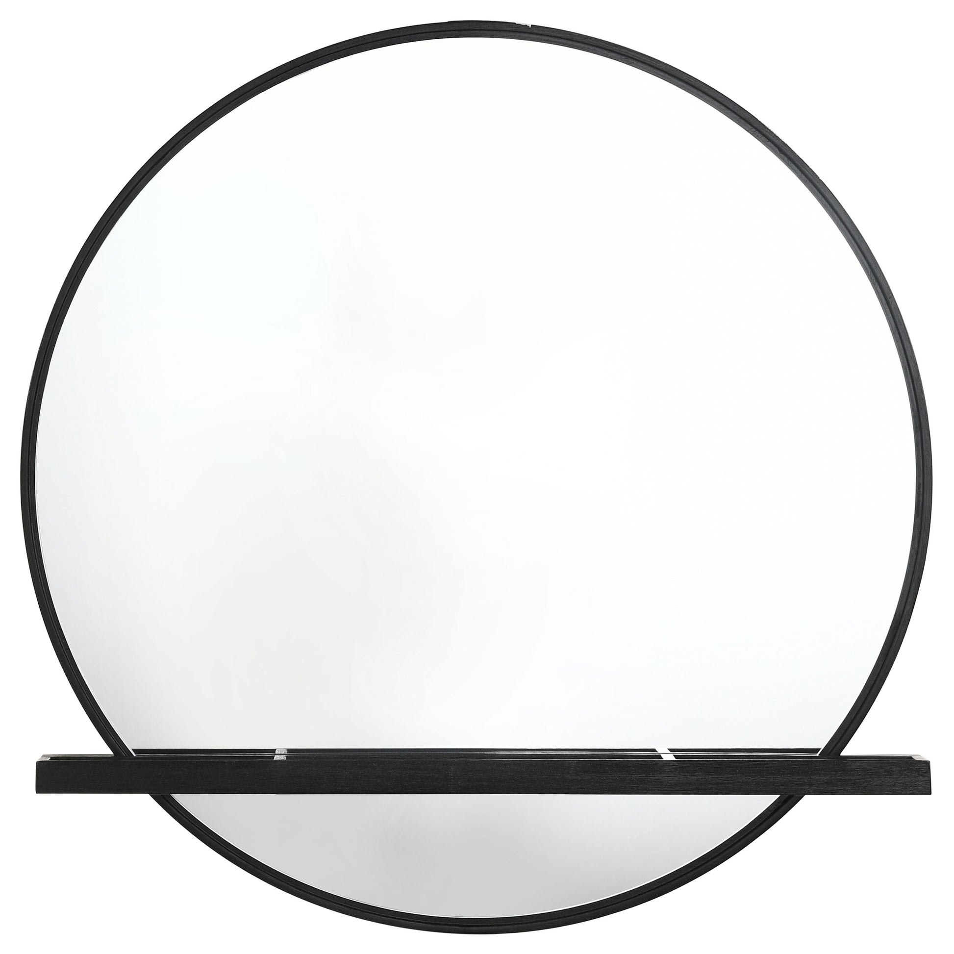 Muted gold accents bring life and warmth to a four-piece modern bedroom set that delivers an upholstered bed, nightstand, dresser and mirror. Chic design pairs clean curves with a crisp black finish to create a set that's refined and tailored while maintaining an inviting ambiance. The set centers on a stylish upholstered bed that features gray upholstery on the head and footboards and rounded corners that soften its overall look and feel. The three-drawer nightstand and eight-drawer chest create plenty of storage, with felt lining in top drawer and a USB port in the nightstand that's perfect for keeping your phone charged. A round wall mirror is the ideal choice over the dresser, offering a jewelry tray that's just right for pieces you wear daily and favorite fragrances.