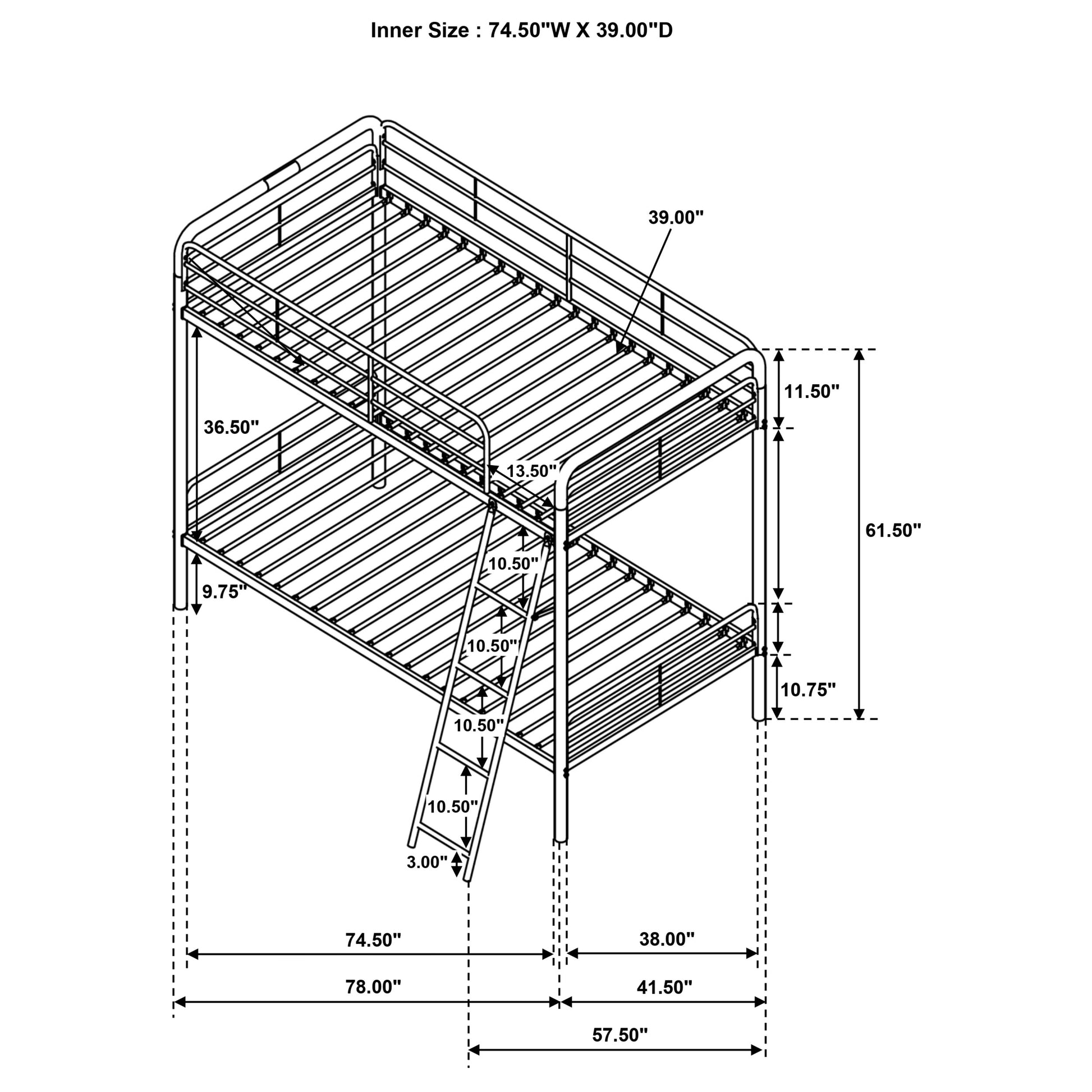 Carson Metal Twin Over Twin Bunk Bed Glossy Silver