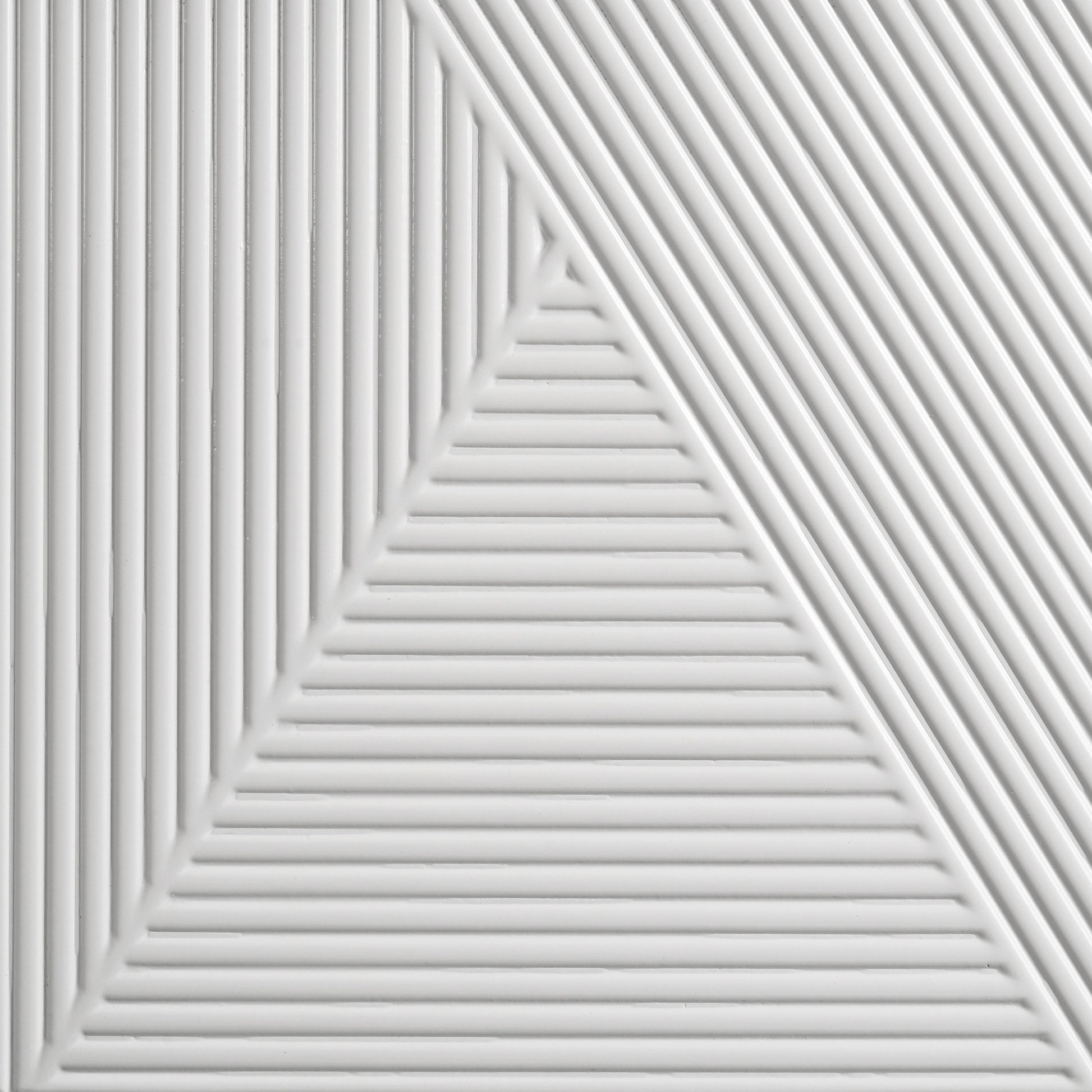 Crisp white high gloss and sculptural textures define this modern bedroom set, blending sleek surfaces with dimensional details. Geometric drawer fronts feature ribbed V-patterns and polished chrome pulls, while all drawers glide smoothly on 45mm metal extension hardware. The headboard stands out with chevron-tufted white faux leather framed by soft white LED trim. Completing the ensemble, a coordinating LED dresser mirror adds ambient glow and polished symmetry to the space. Elevated on chrome legs, this set is a showcase of contemporary form and function.