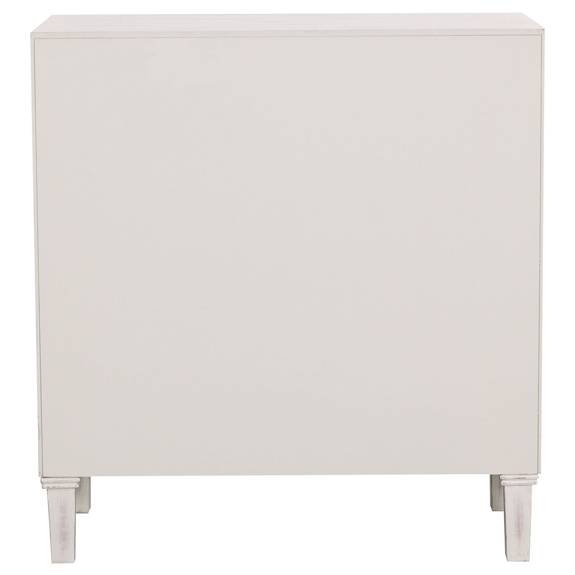 Bring charm and character to your space with this beautifully crafted accent cabinet. Featuring intricately carved floral doors and a distressed white finish, this piece delivers a perfect blend of rustic farmhouse and timeless elegance. Inside, a spacious shelf keeps everyday items neatly tucked away while tapered legs add a classic touch.