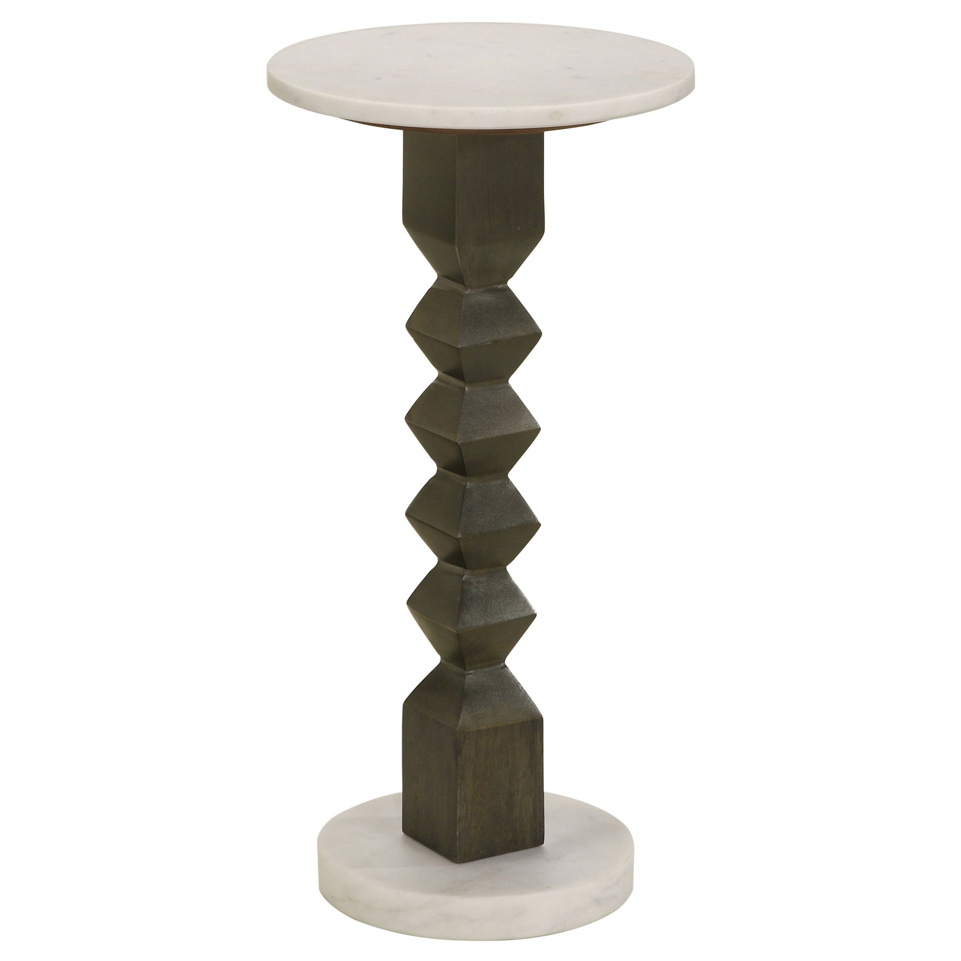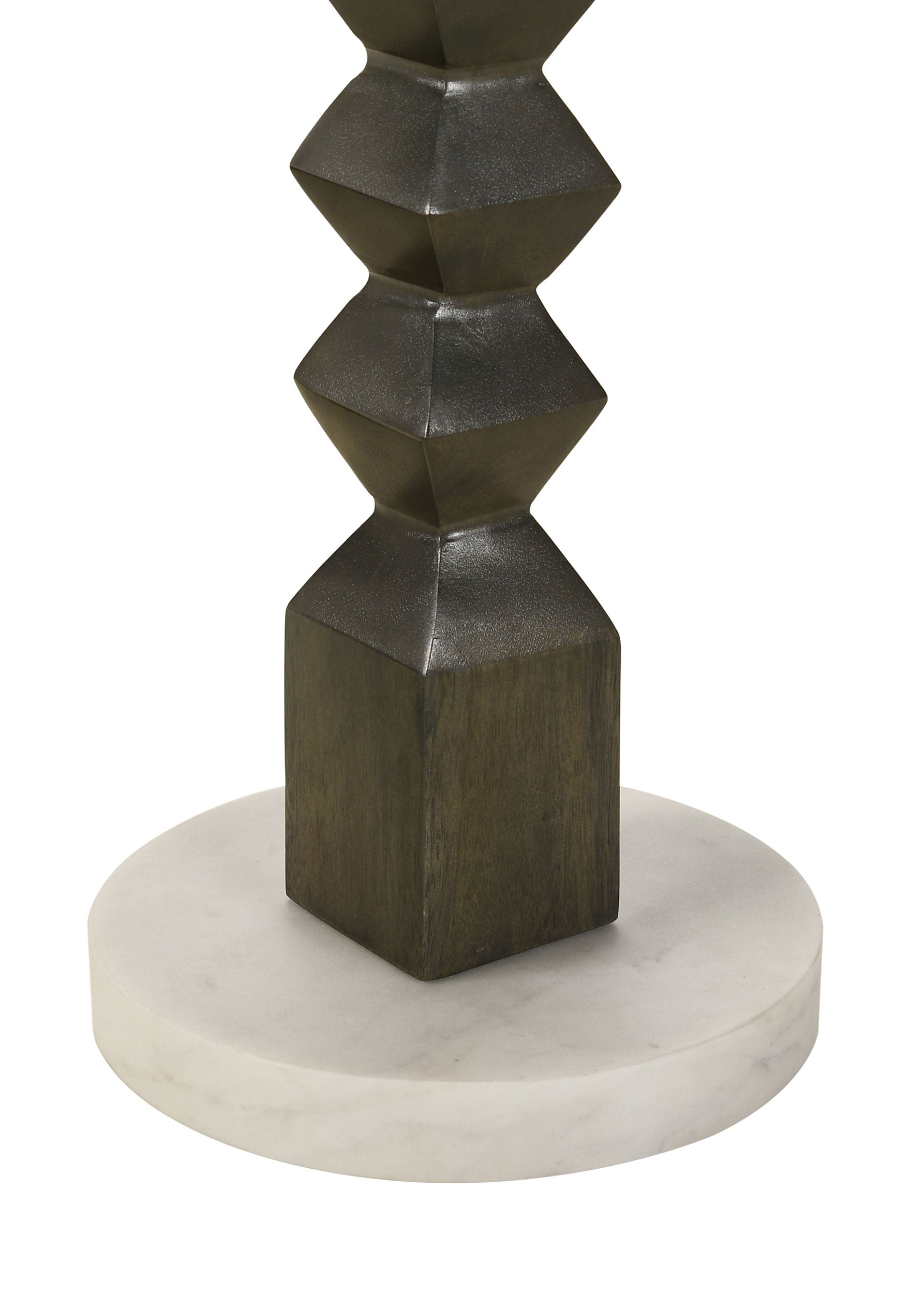 Put a kick in casual home décor with a style that suits your whim. This side table offers a charming design and a contrasting palette, perfect for accentuating a contemporary space. A crisp geometric motif takes a page from Old World aesthetics in a table featuring a dark gray mango wood pedestal with an eye-catching stacked cube design. A round white marble top and matching base contributes a hint of glam to upgrade your timeless living style. This table is an excellent choice for both serving and displaying plants or décor.