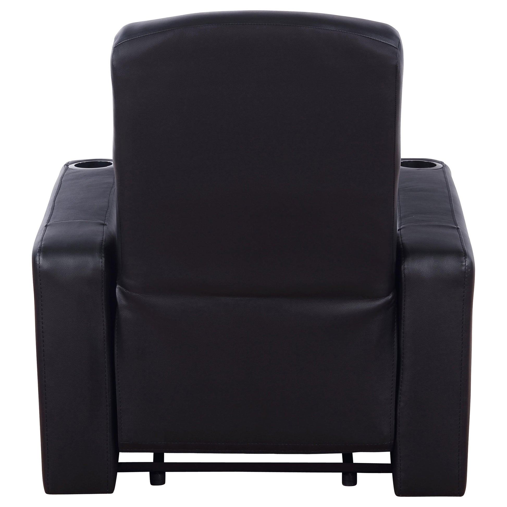 Experience cinematic luxury at home with this sleek home theater seating collection. Each recliner is upholstered in smooth black top grain leather everywhere the body touches, offering both elegance and durability. Designed with high backs, supportive pocket coil seating, and wall-hugger mechanisms, the recliners maximize comfort and save space. Built-in cupholders provide convenience, while optional wedge consoles add soft-closing storage for remotes and accessories. Modern stitching and rounded track arms complete the refined look, making this collection the ultimate in home entertainment seating.