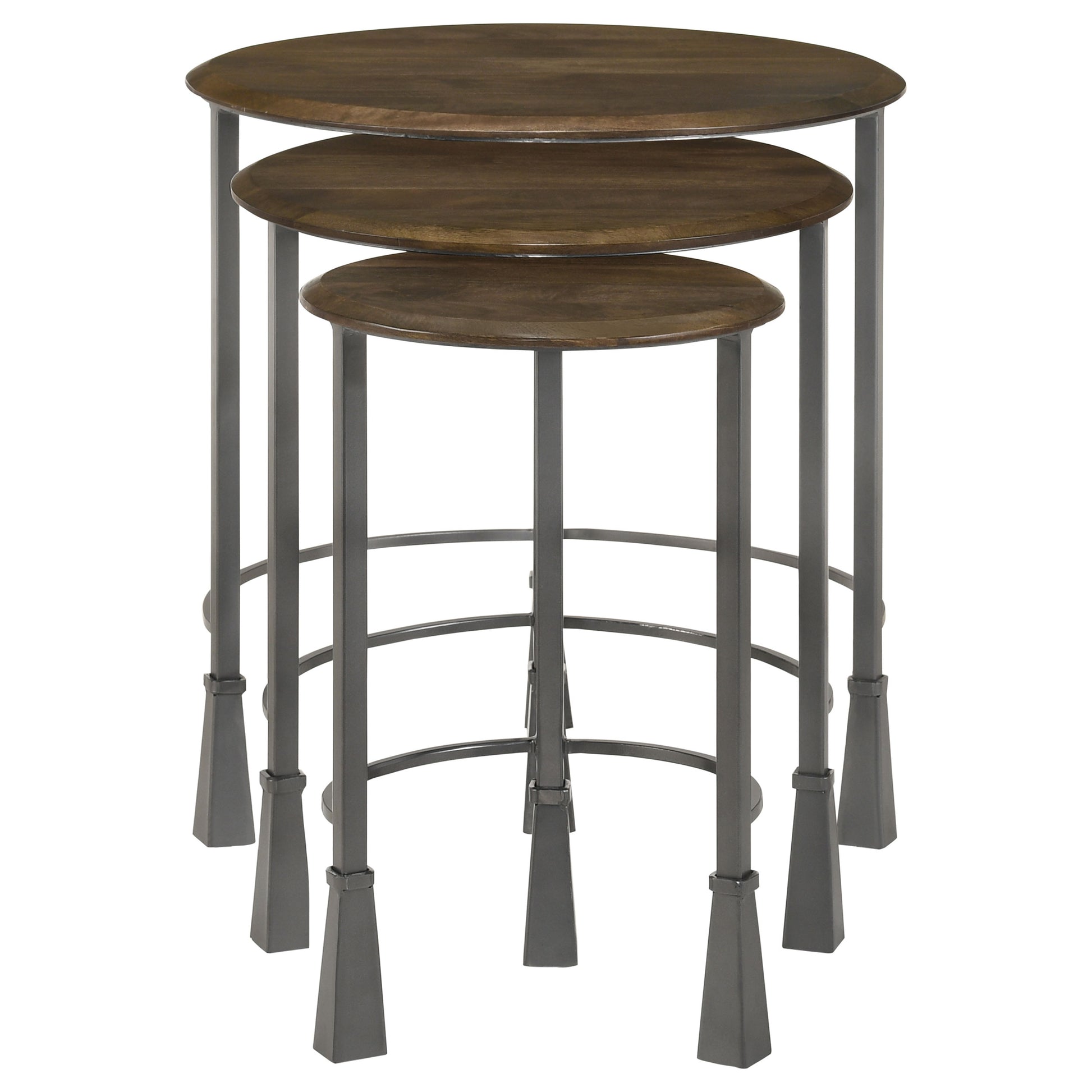 Elevate your space with this three-piece nesting table set, blending modern industrial aesthetics with natural charm. Each table features a solid mango wood tabletop, showcasing a warm, organic finish that complements various interiors. The gunmetal-finished iron legs are designed with slim tubular supports, conical flared feet, and a circular brace for stability and visual balance. Ideal for compact spaces, these tables nest together for easy storage or can be used separately to provide extra surface area when entertaining. Whether placed in a modern farmhouse, loft, or urban home, this set offers versatility and functionality with timeless appeal.
