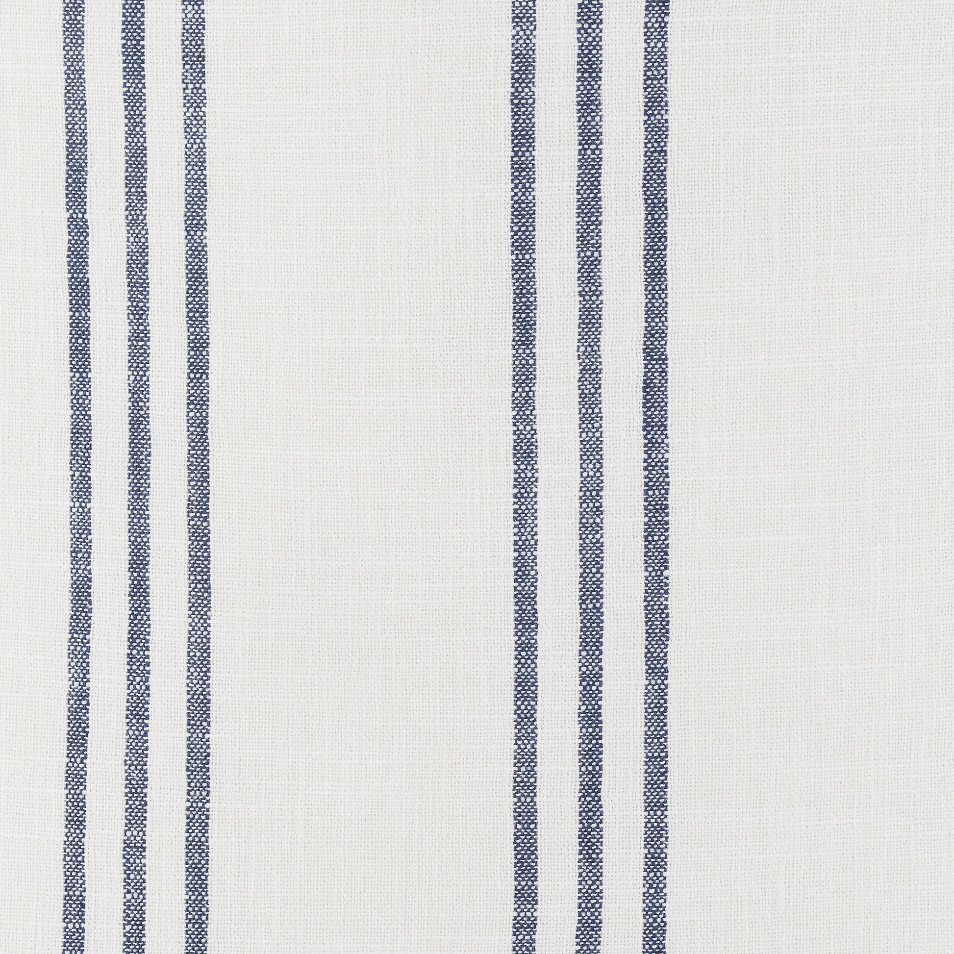 • Upholstered in linen-like beige fabric with blue stripes for a casual yet refined look
