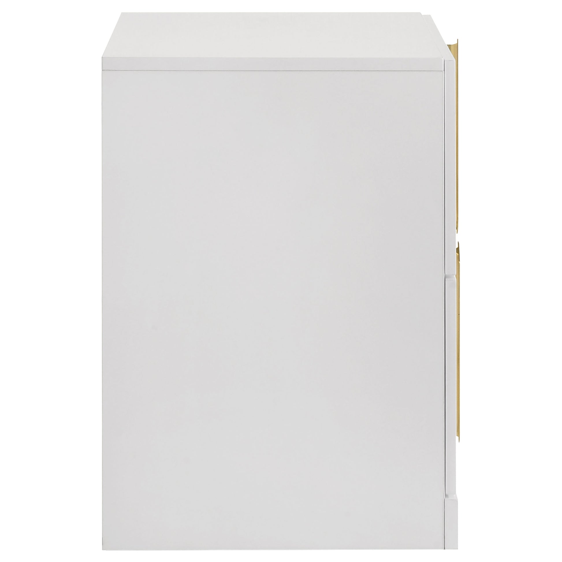 Bold in its simplicity, this two-drawer nightstand captures modern Italian influence with practical functionality. The white high gloss finish is made with eco-friendly PET thermoplastic, offering a surface that resists scratches, moisture, and heat. Vertically mounted polished gold pulls create a sculptural focal point, while two drawers provide easy-access storage beside the bed. Arrives fully assembled for instant style and utility.