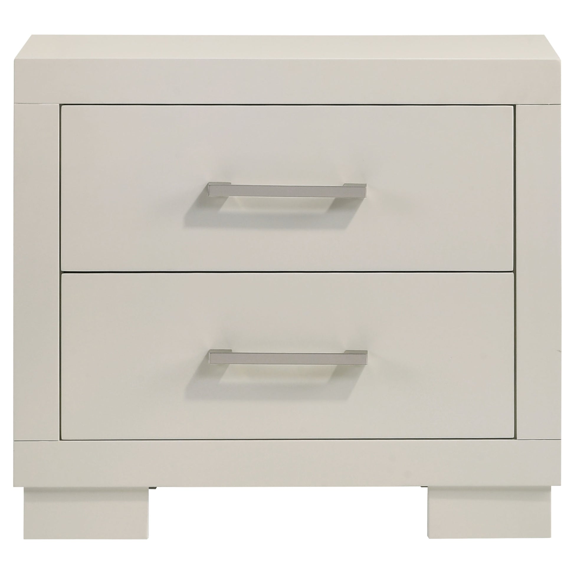 This deluxe 4-piece bedroom set from the Jessica collection includes a dresser and nightstand. The stately bed is crafted in a platform style with smooth lines and crisp edges. The nightstand and dresser have deep drawers accentuated by lustrous hardware. An accompanying rectangular mirror goes atop the sturdy dresser to complete the set that's perfect for a well-appointed master bedroom. The entire set is fashioned from solid wood and ash veneers that's warmly finished in a rich cappuccino with an option for a snow white finish.