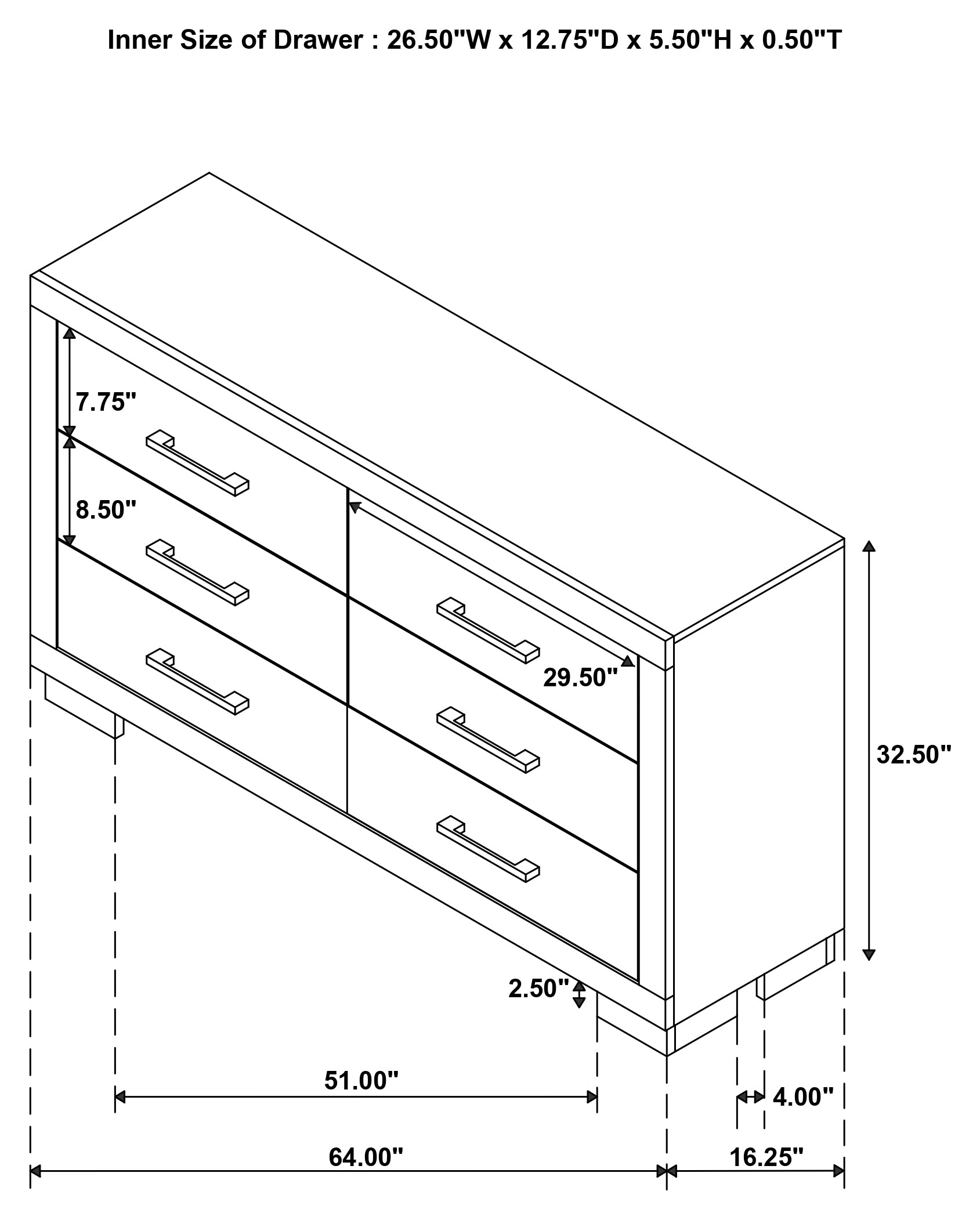 Jessica 6-drawer Dresser with Mirror Cappuccino