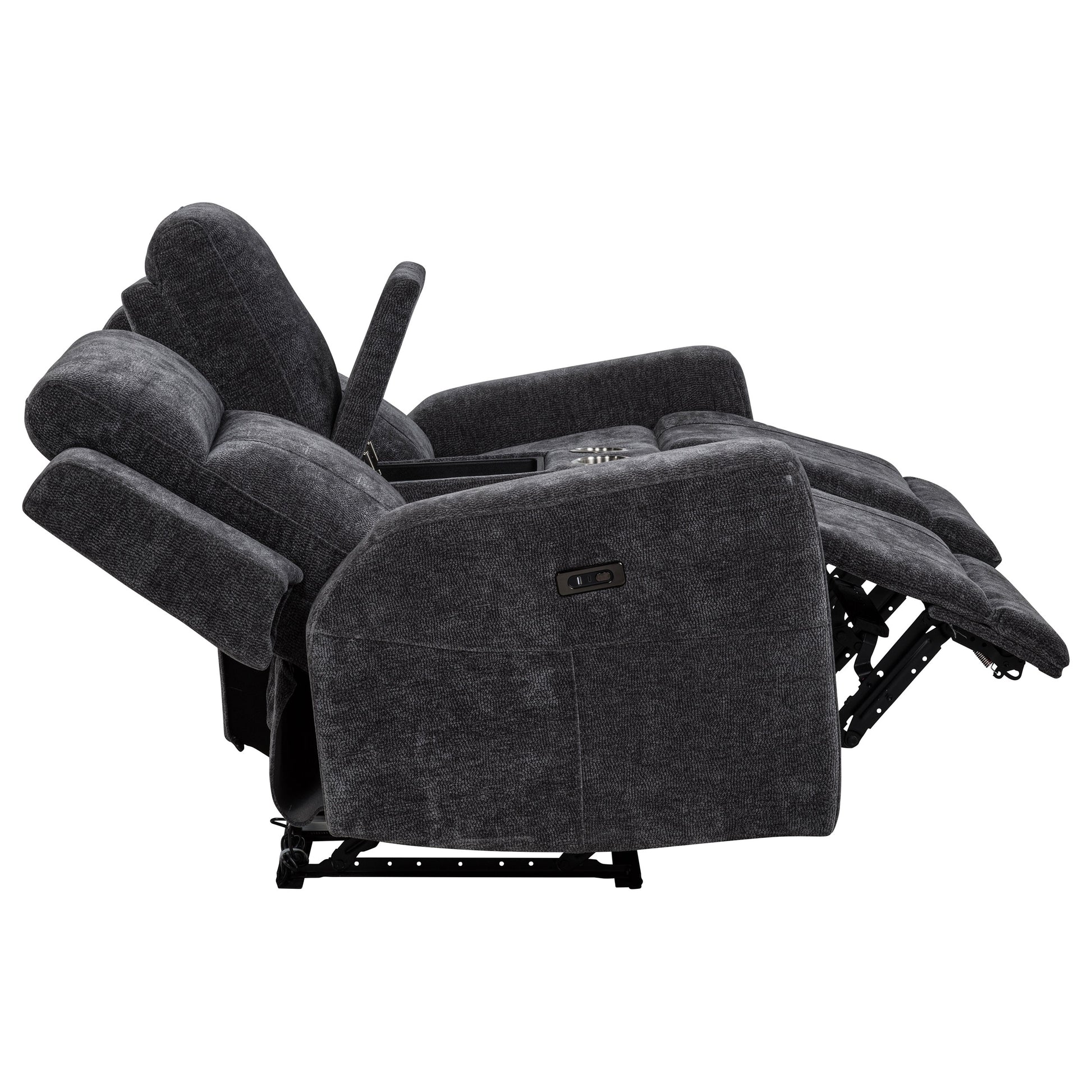 Unwind in perfect sync with this chenille power reclining loveseat, crafted for shared comfort and convenience. Dual recliners offer smooth, quiet motion at your touch, while a center console adds thoughtful storage with a lift-top compartment and two removable stainless steel cup holders. Wrapped in soft, textured chenille and reinforced with a durable metal frame, this piece blends everyday luxury with functional ease.