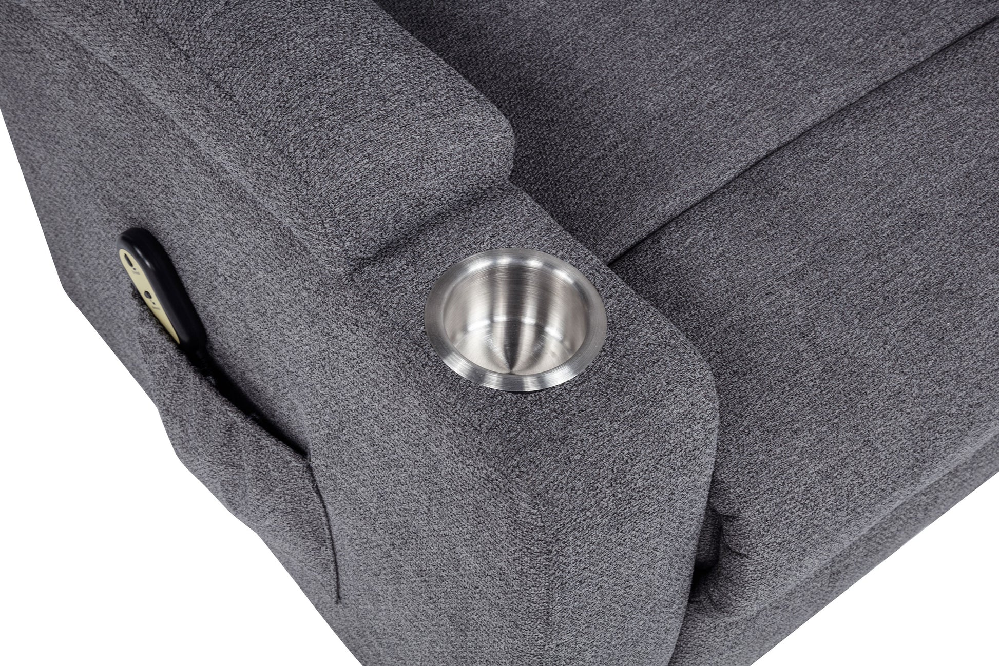 • Stainless steel cup holders on both arms keep beverages secure and accessible
