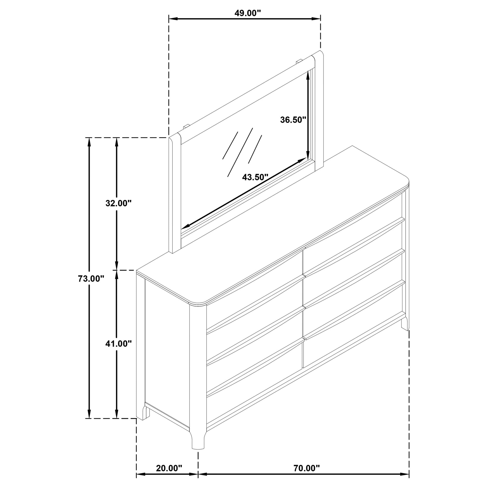 • Enhance your bedroom with the handsome profile and storage of an eight-drawer dresser and mirror