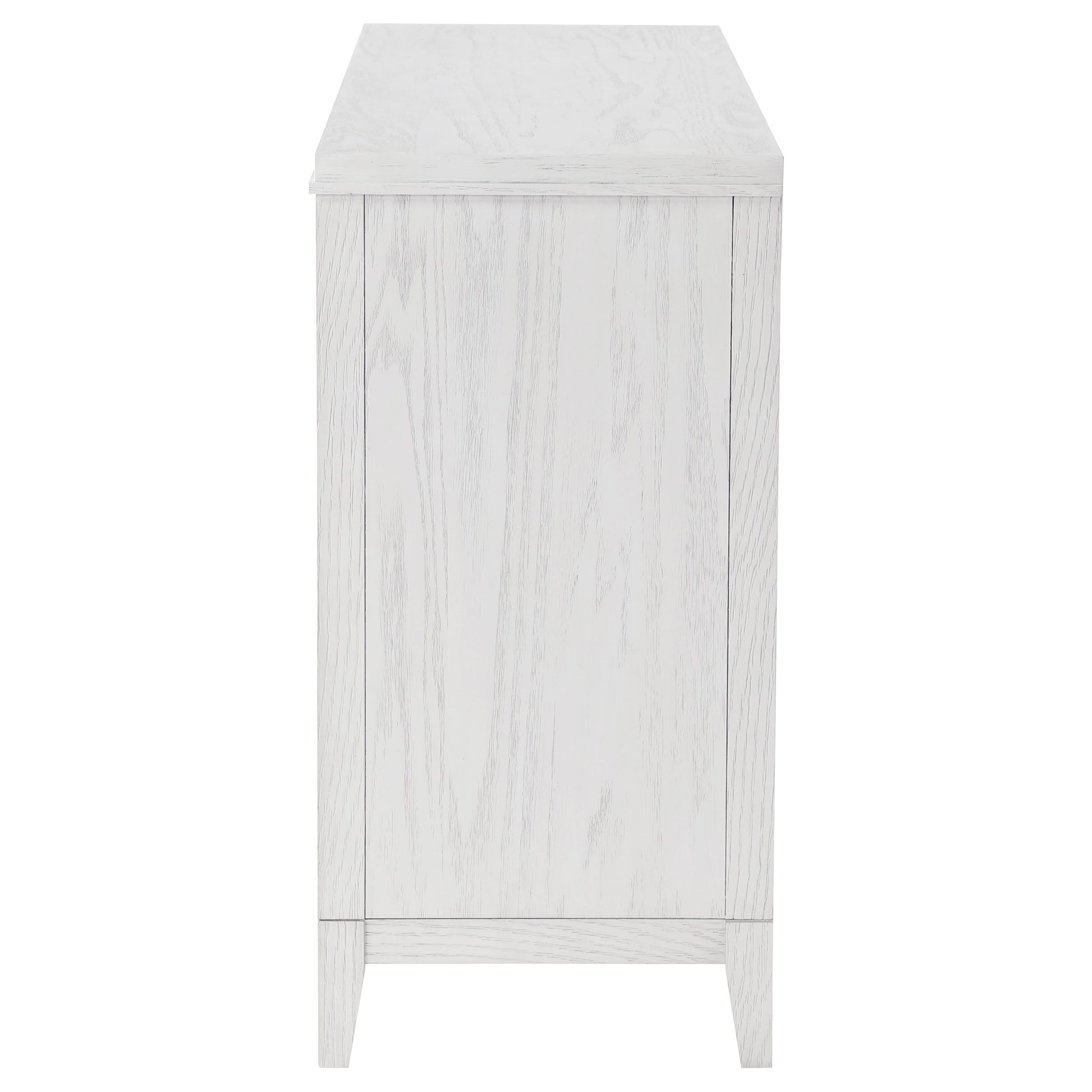 • Distressed white finish allows light wood grain detail to show through, adding character