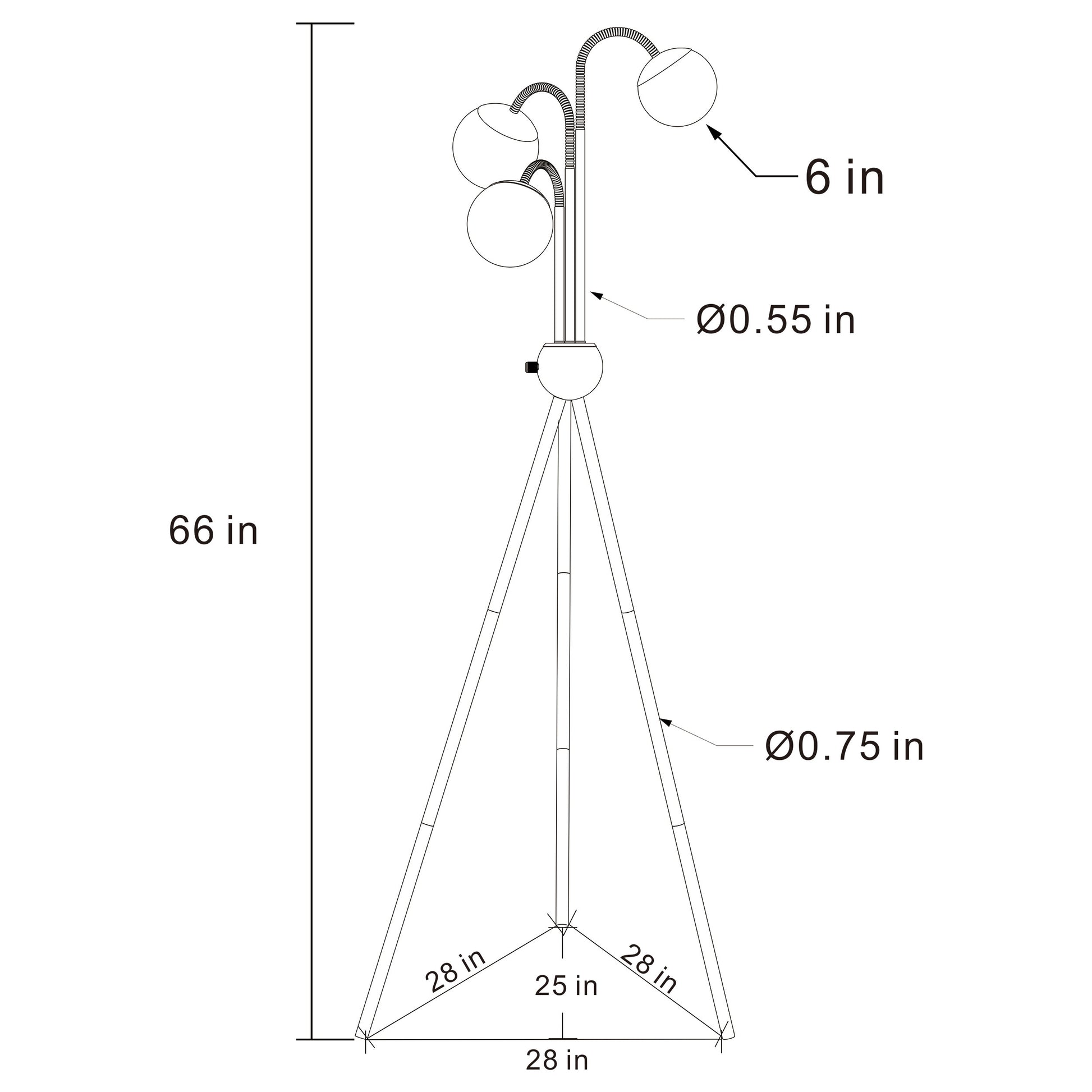 • Bold tripod base with round accent and bent arms for multi-directional lighting