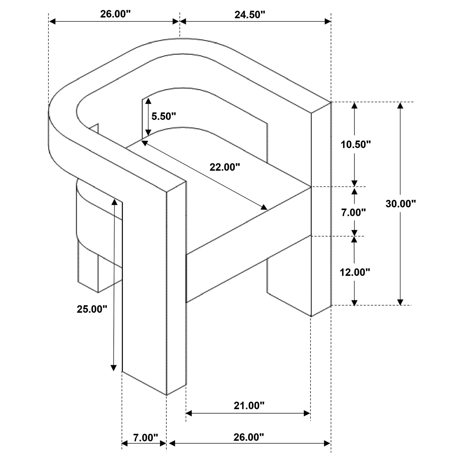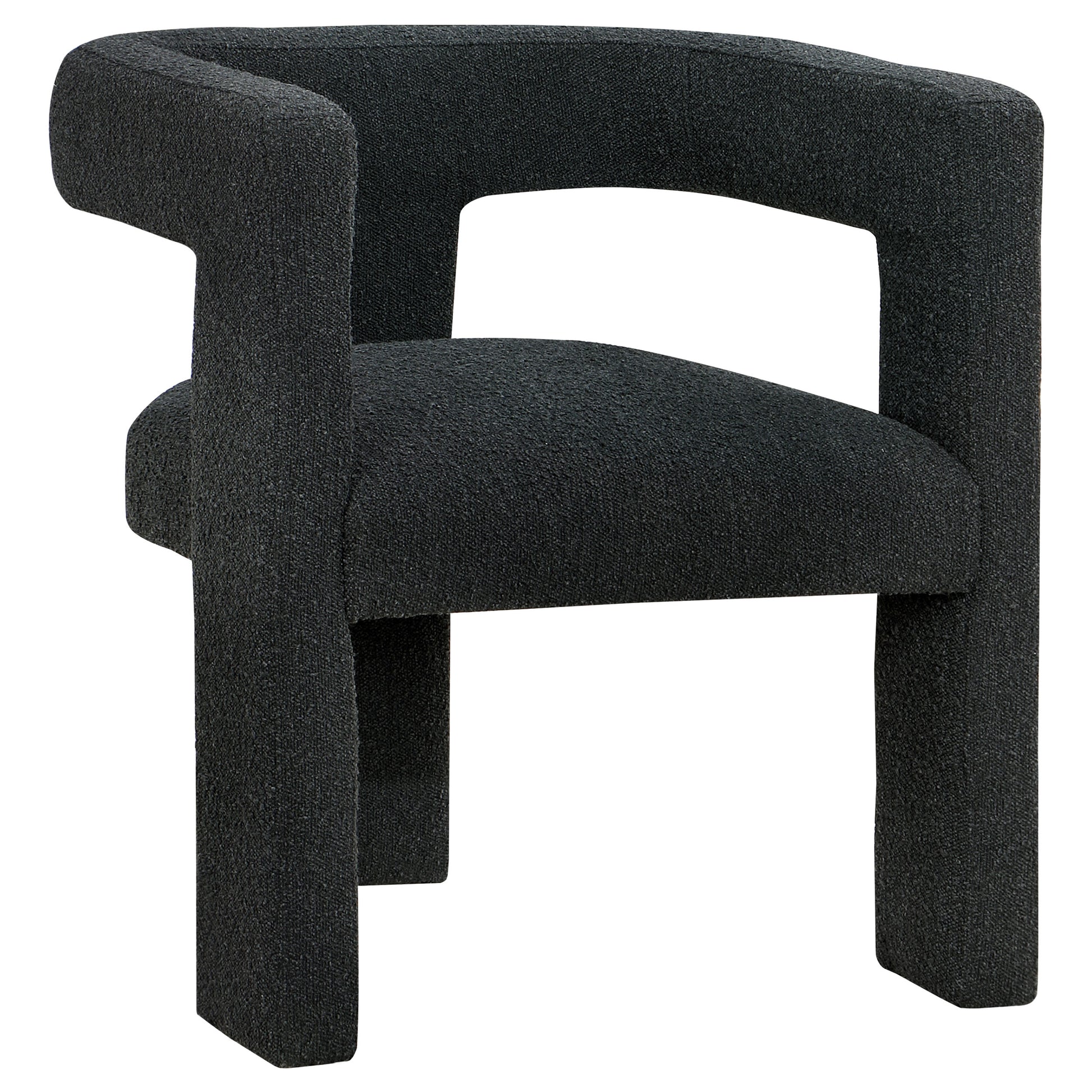 Enveloped entirely in the embrace of plush bouclé, this chair redefines the art of relaxation with its all-fabric design. The seamless transition from the cushioned seat to the curved arms, all robed in the same soft fabric, creates a cocoon of comfort. This chair's silhouette is a gentle wave of tranquility, its form an ode to the curves found in nature. The uninterrupted bouclé upholstery invites a serene tactile experience, transforming the chair into a modern sanctuary. It's a haven of softness, a singular statement of elegance and ease.