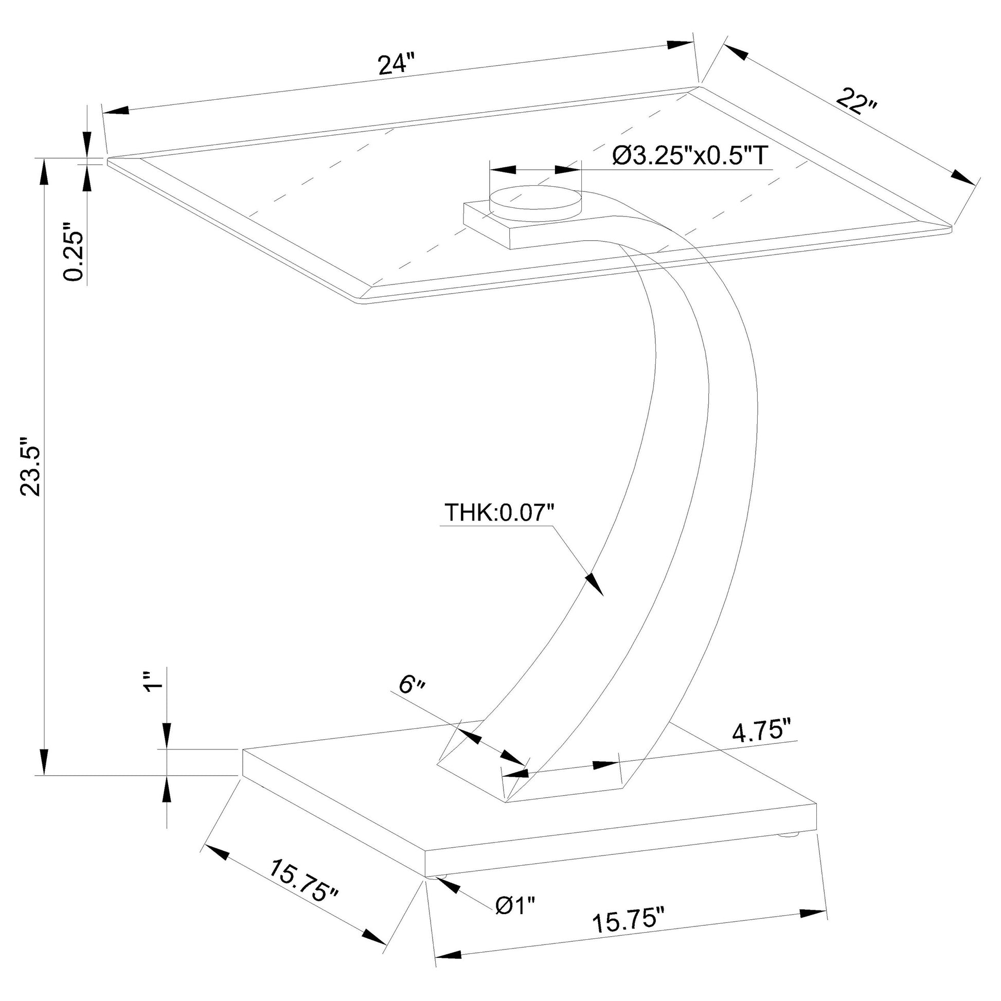 This end table combines style and durability with its tempered glass top and sleek design. The gracefully curved base features a brushed satin silver finish, adding modern elegance, while the polished black platform base provides striking contrast and sturdy support. Perfect for minimalist or contemporary spaces, this table blends functionality and refined design, enhancing small spaces with its sophisticated touch. A versatile accent piece for modern interiors.