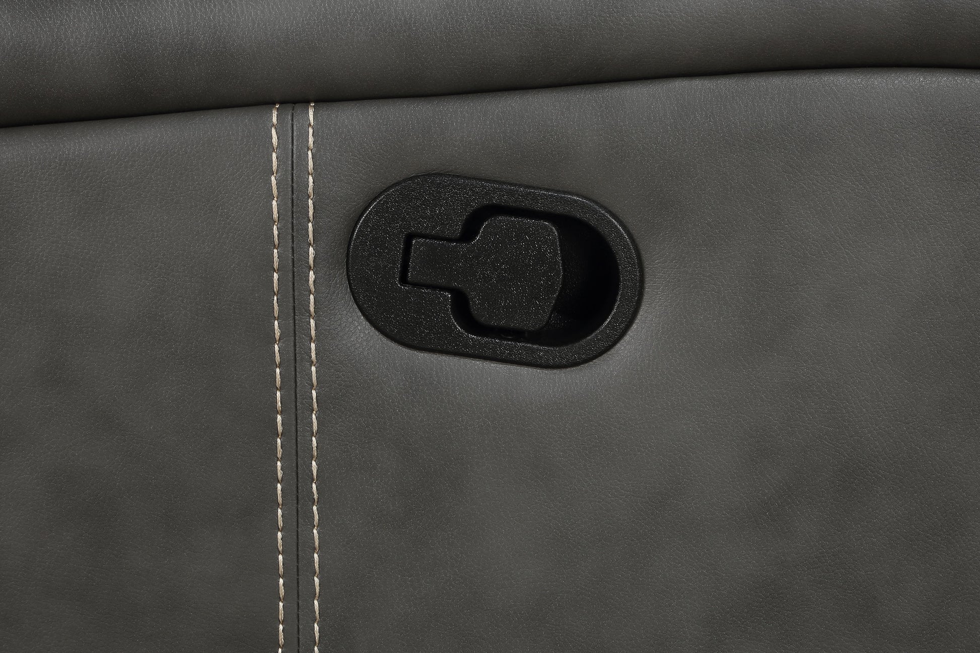 • Trending grey leatherette upholstery with decorative topstitching adds easy-care and maintenance