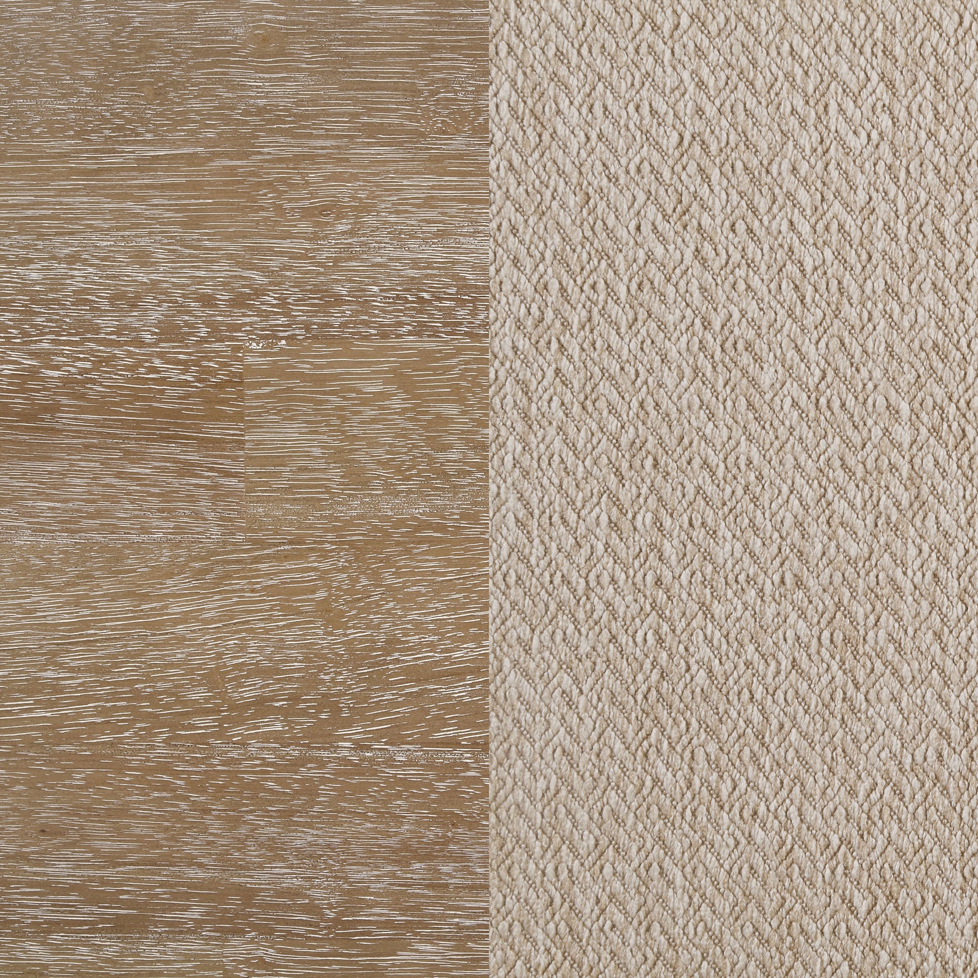• A light brown wood finish features a wire-brushed effect that adds depth and detail