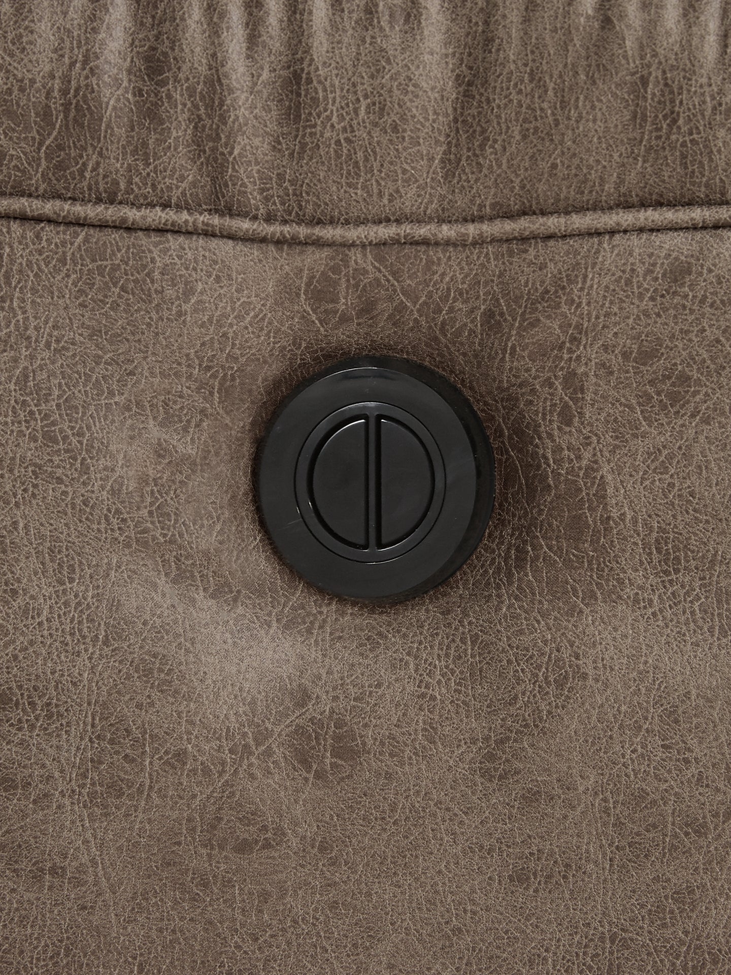 For those who love the cool look of leather but long for the warm feel of fabric, this power reclining sofa delivers both with ease. Its high-performance padded faux leather is remarkably durable and easy to clean, making it just the thing for family spaces. When it’s time to relax, the one-touch power control puts the perfect position at your fingertips. Channel-stitched back cushions provide indulgent lumbar support for maximum seating comfort—not to mention fashion-forward flair.