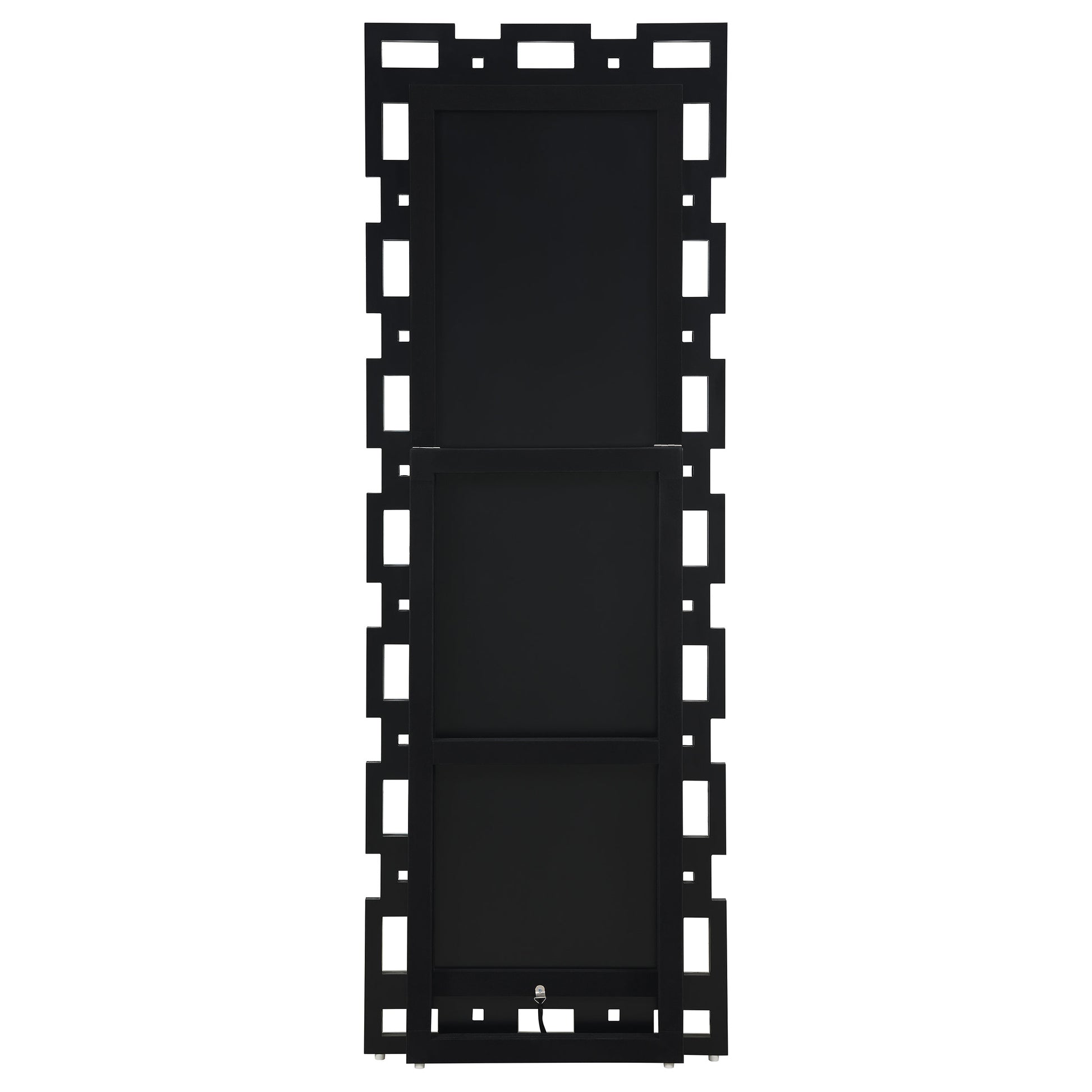 Check your fashionable ensemble with this charming, modern glam cheval mirror. A sophisticated frame of open rectangles and squares surrounds the main mirror, lending a Greek key-inspired silhouette for a classical aesthetic. Each sleek, boxy shape is covered in a mirror trim tile designed with a subtle bevel edge for a hint of texture and extra dimension. A rear kickstand leans the cheval mirror backward ever so slightly, allowing you to see your whole look before stepping out for dates and workdays. Place this elegant cheval mirror in your bedroom to create an instant dressing area.