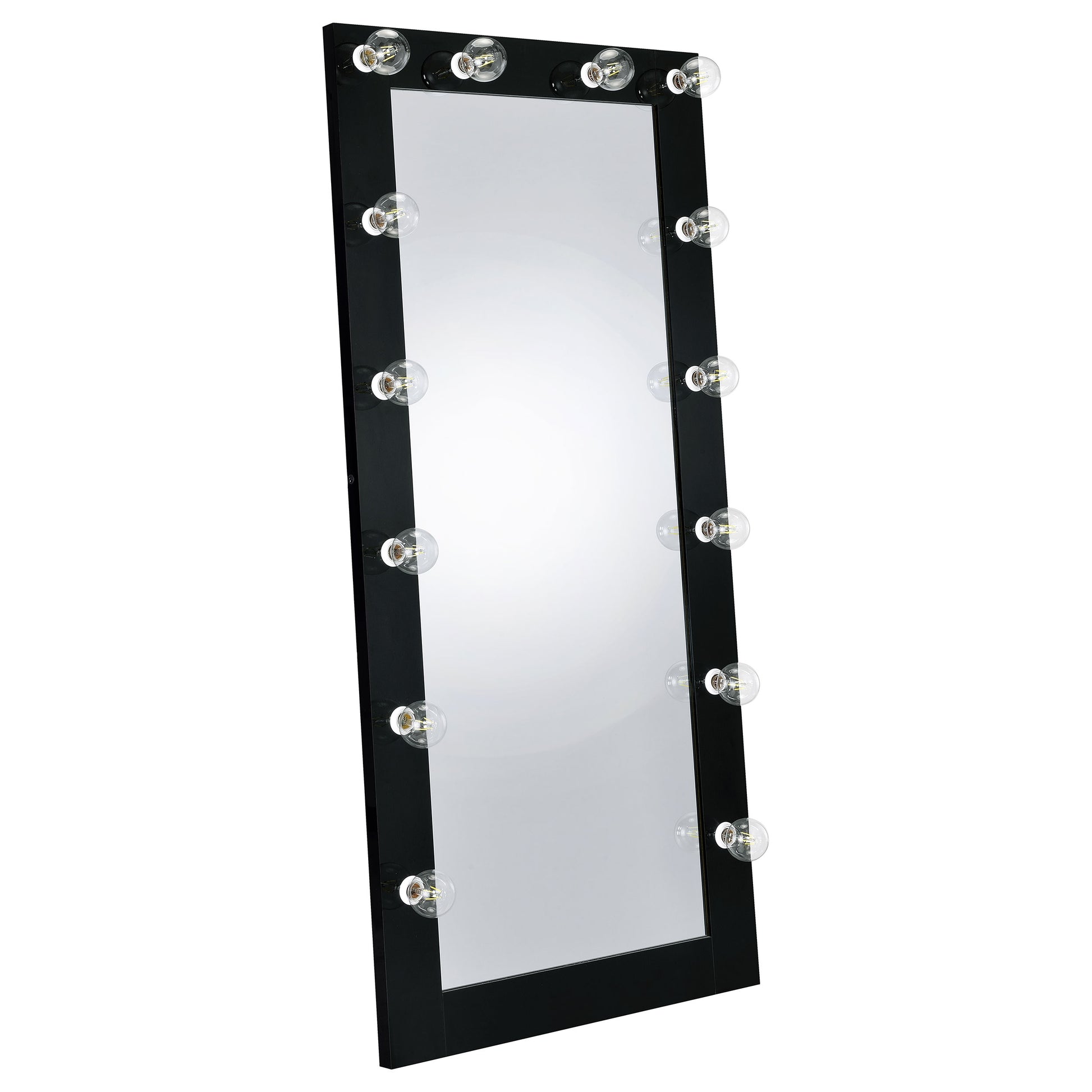 Zayan 32 x 71 Inch Floor Mirror LED Lighting Black Gloss
